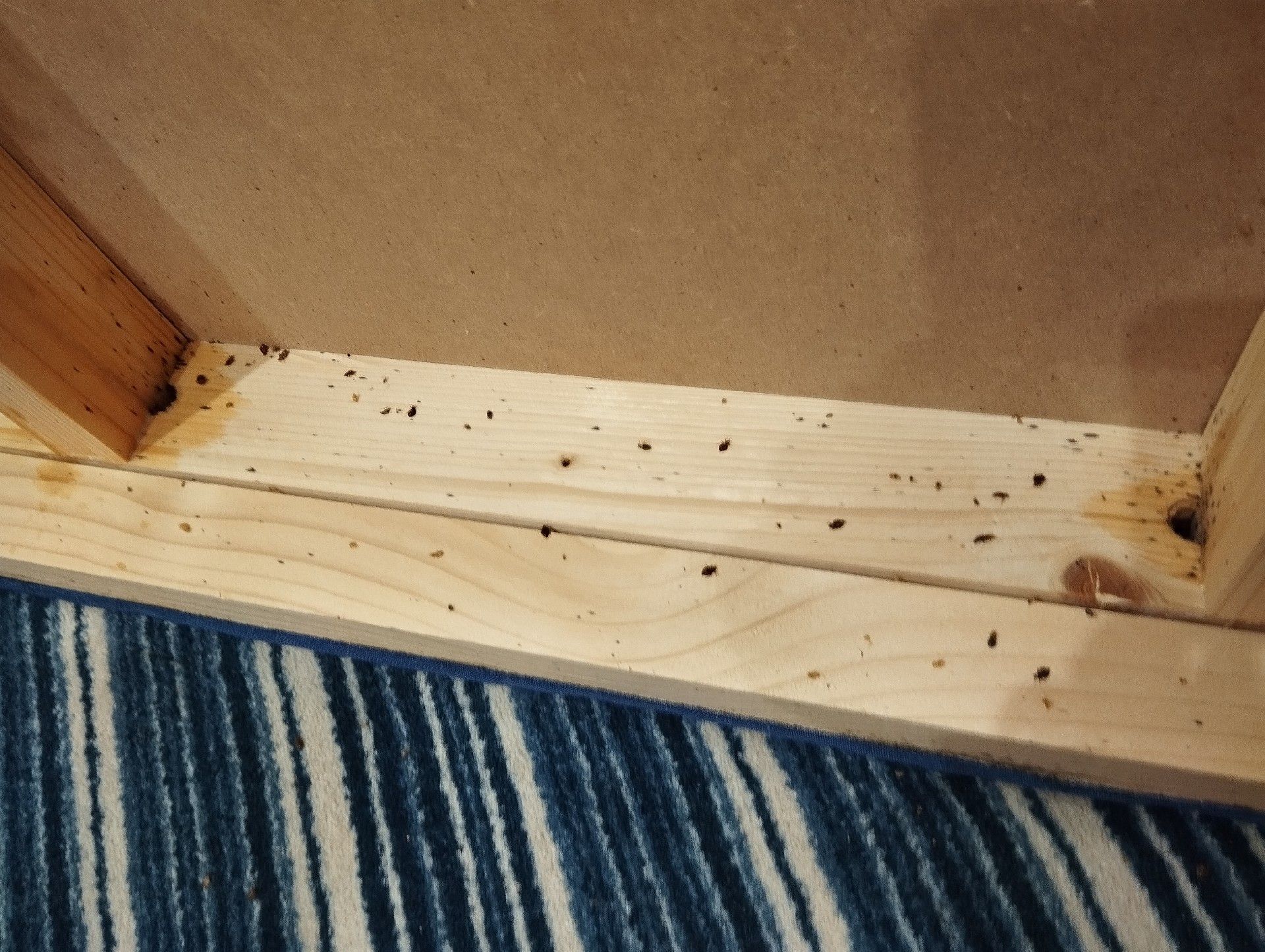 - Dunkle Kotspuren: Bettwanzen hinterlassen winzige schwarze Punkte auf Matratzen, Bettgestellen oder Wänden.